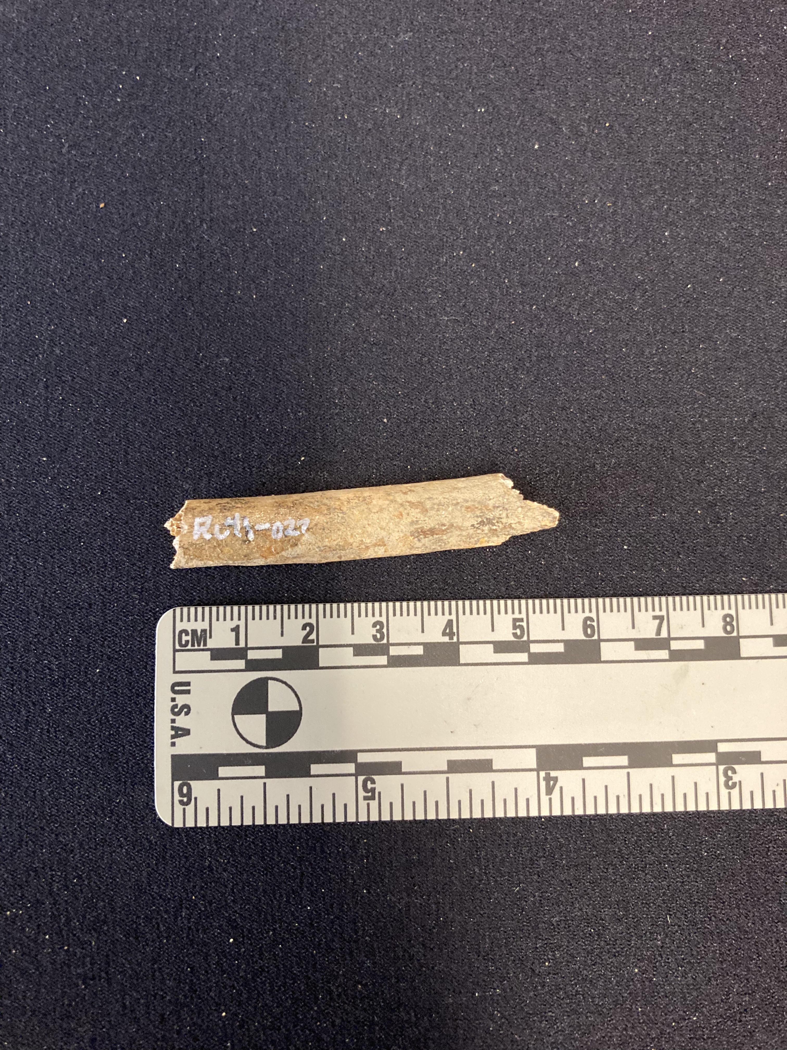 The box was a collection of random, unassociated remains.  Some were human, some were animal.  The animal bones were typical of historic house-hold waste.  Domesticate animals such as cow, sheep, and pig were present as well as some deer bones.  Of the human bones, the vast majority were fragments of long bones.  Only two very small fragments of skull were present and one half of a pelvis.  What immediately struck our team was that quite a few of the human bones were sub-adult, meaning children, and a range of ages were displayed.